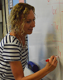 With dry erase pen on whiteboard, she demonstrates an alternate way to solve an algebraic equation, her face lighting up with delight. “Isn’t that cool?” she asks, her giddiness growing exponentially.
