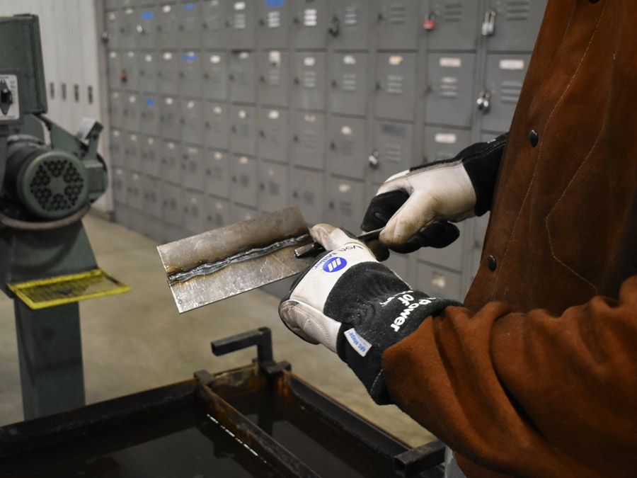 In the welding lab, Sebastian recently worked with senior Jahan Likely to learn the proper technique for welding, or bonding two metals by melting them where they meet so they form a secure joint.