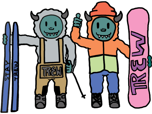 The students’ colorful and friendly Yeti snow monster designs embody the company’s optimistic, adventuresome and approachable spirit. It even bridges the gap between boarders and skiers, with a mutual “thumbs up” and interlocked hands between the bibbed snow monsters.