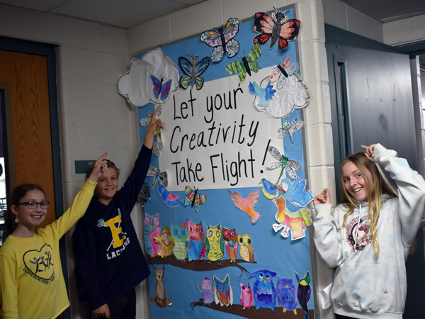 East Grand Rapids — Take a tour with the Lakeside Student Ambassadors and you will learn more than just where the lower and upper elementary wings are located. You’ll discover what the displays in the glass cases are all about, where the basketballs for outdoor recess are located, why the elementary school’s mascot is a lion and why there is a yellow flag with a coat on it displayed in the hallways.