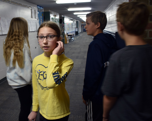 “A lot depends on what the family wants to see,” said fifth-grader Arrabella Meyerhoffer about how the tour starts. “A lot of times, a family wants to see the classroom. If they have a class in the upper elementary, we would start there, but we always make sure to show the family both wings.