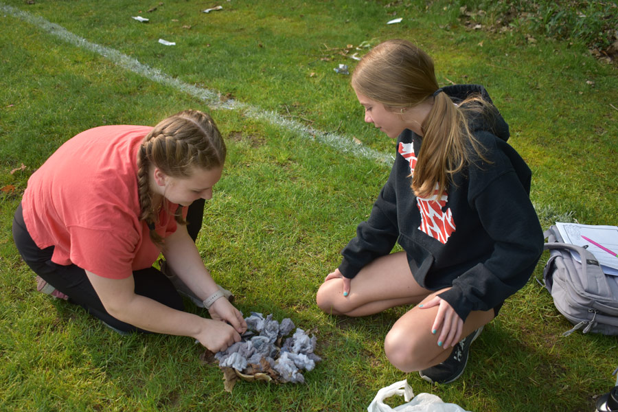 Byron Center — Maddie Law and Makayla Rodriguez used a compass and their feet recently to measure 50 feet in a northeasterly direction. The pair were participating in an orienteering exercise that taught them how to get to their destination, marked in the grass.