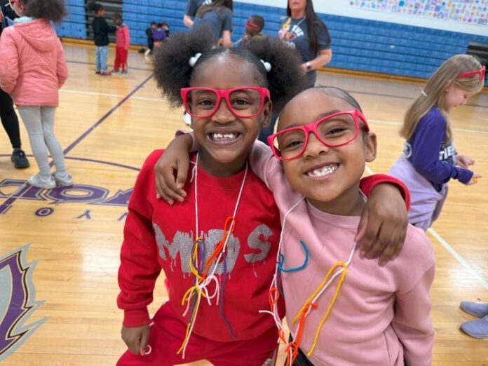 Wyoming — West Elementary second-graders Siomara Campos and Ianayla Fox tied colorful pieces of yarn around each other’s necklaces as they shared compliments.