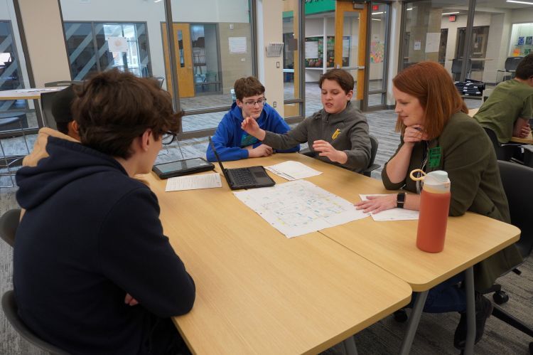“Having somebody who is actually in the profession, showing you real-life problems and solutions, does give you a better sense of what it takes to design something,” said seventh-grader Lucas Renner, who with Enzo, Briggs and seventh-grader Jackson Keller designed the house Den Boer looked at.