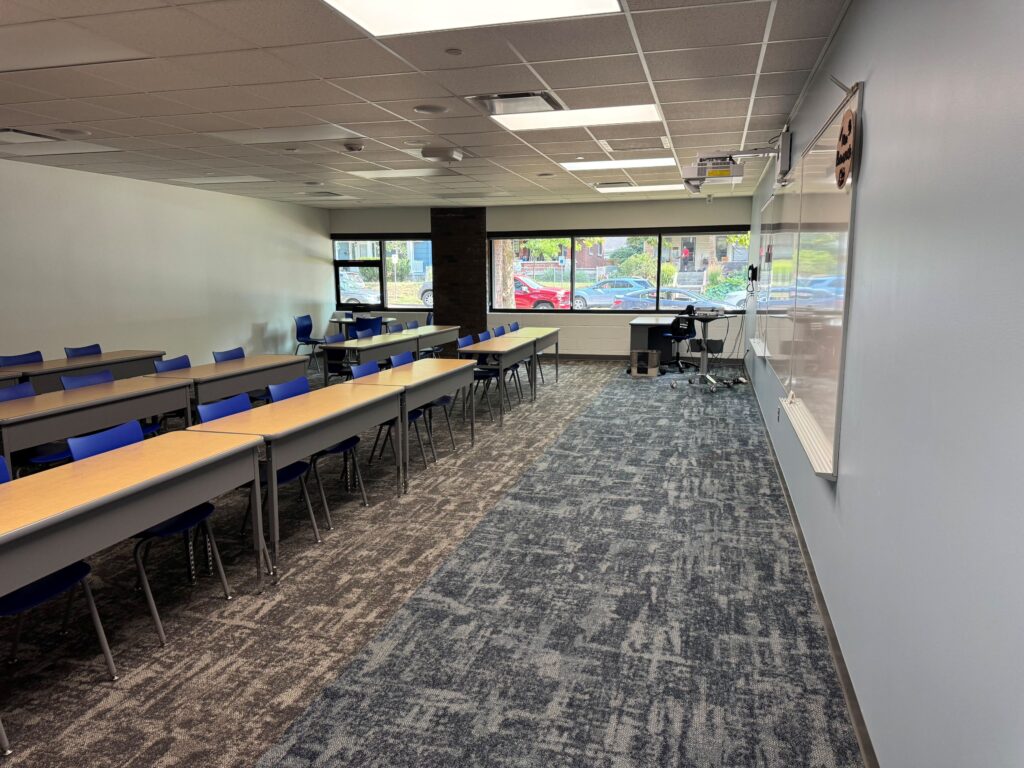 The building now boasts a secure entrance, air conditioning, larger windows, collaborative spaces, a resurfaced parking lot, new signage and more. It includes five classrooms, plus two computer labs and a teaching lab.