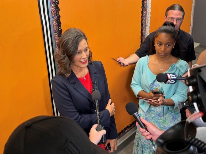 Asked about the likelihood of a government shutdown due to a deadlock in Lansing, Whitmer said that while she does have to prepare for the possibility, negotiations are ongoing and she’s “optimistic” the budgets will get done on time.
