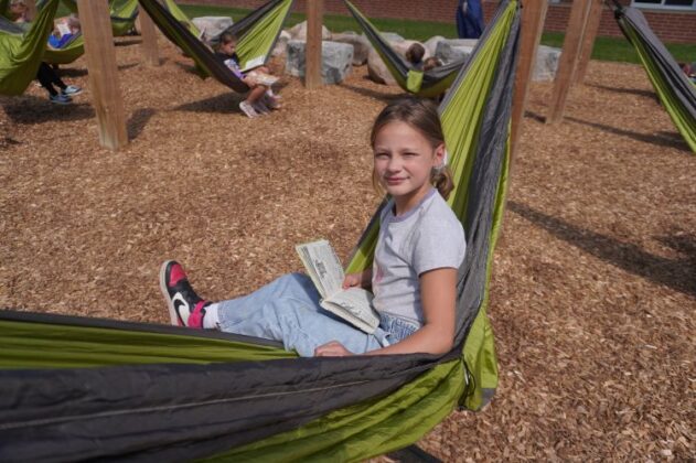 “We are using it for lessons, for silent reading and for buddy reading,” Burnett said, adding that classes can use it for other subjects as well, with students sitting in the hammocks and writing on clipboards. “It can be a space for anything.”