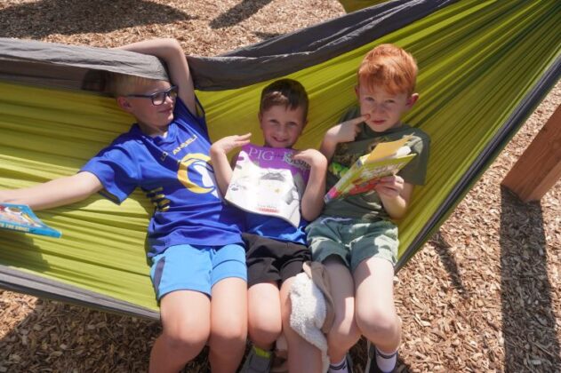“It’s the first-graders’ first time out here, so we thought it would be good for our third-graders to show them where the hammocks are (and) how to hang them, and then they are just going to enjoy reading together,” Wills said.