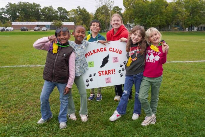 The club is “a longstanding tradition” at the school, Borgman said; its structure is based on a nationwide program to get kids moving. She incorporates Mileage Club concepts into PE classes in kindergarten and DK, so that when the activity becomes their choice in first grade, they already know how fun it is.