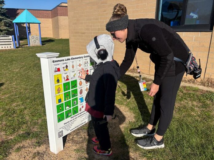 All five Caledonia elementary schools plus the Early Childhood Center now have communication boards on their playgrounds to help students share their feelings and identify their needs, which is especially helpful to non- and minimally verbal kids.