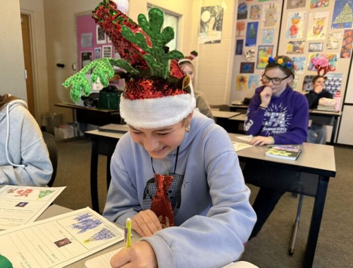 Duczkowski-Oxley said it’s an activity she cherishes. She keeps stacks of the elementary Santa letters for students to look back on in ninth grade.