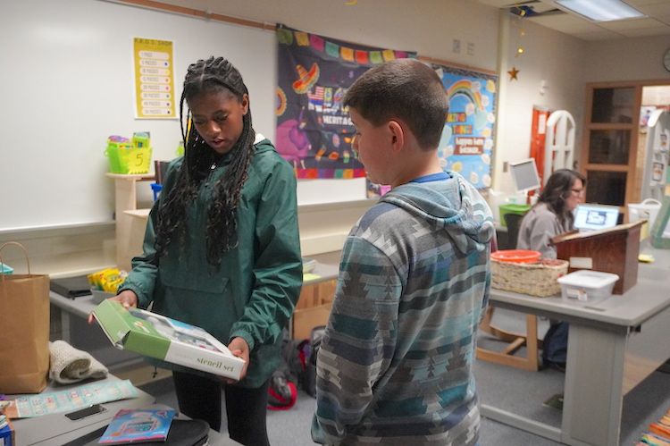 Calvin’s search for a Christmas present is one of the reasons social worker Mandy Bernal-Hill and special education teacher Casey Getter worked to open the school store this year.