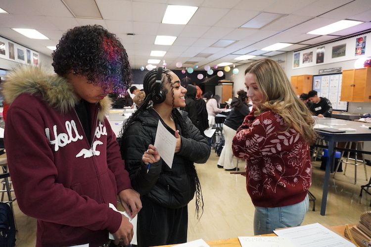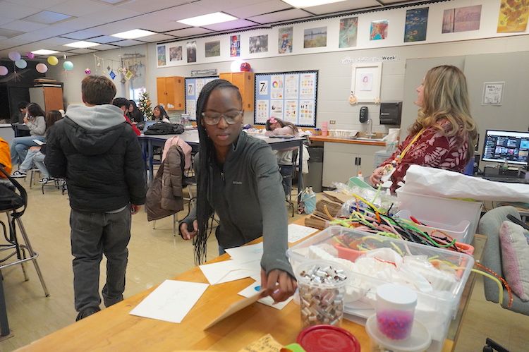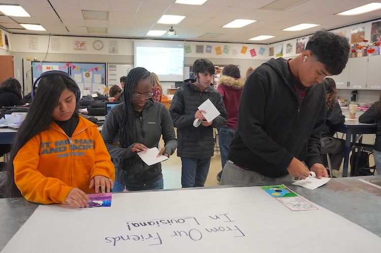 On the day of the reveal at GHHS, students came to the front of the classroom to select an envelope containing artwork from a Captain Shreve student, choosing the one that caught their interest.