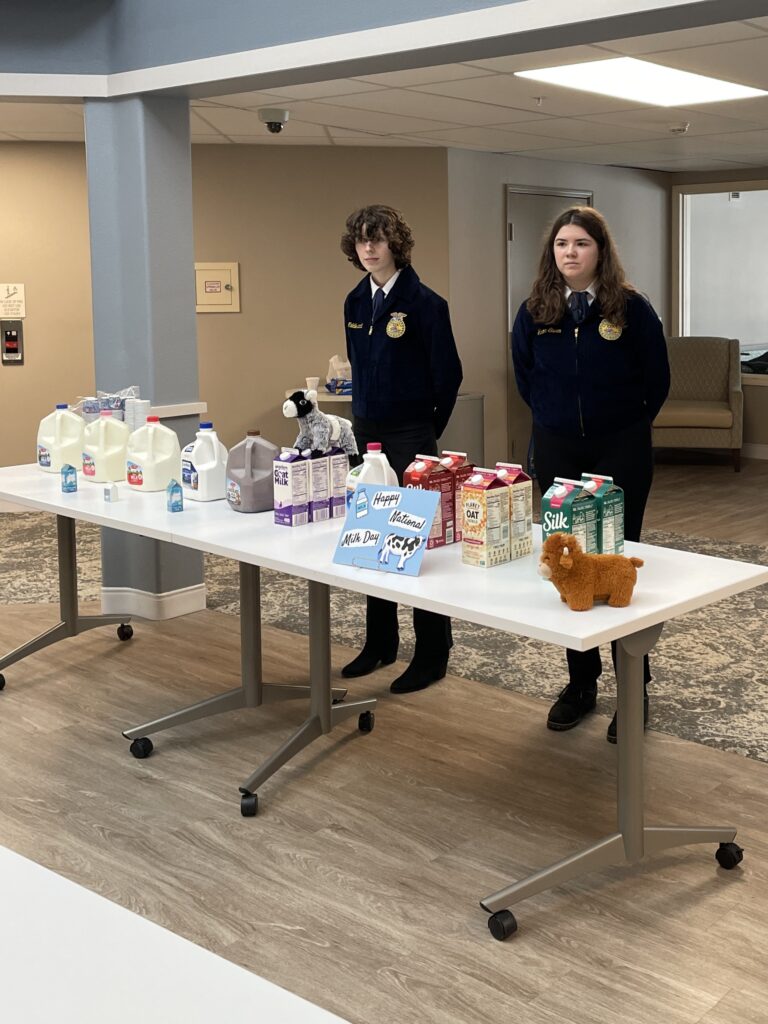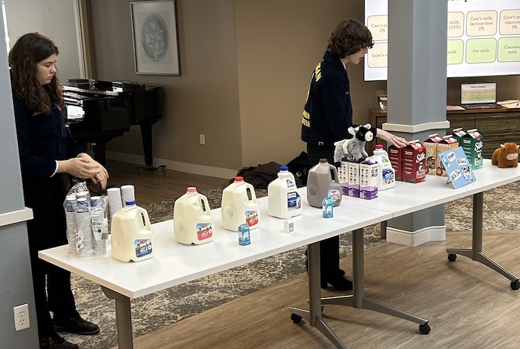 Adison and Meg, who are two of the nine officers for the Tech Center’s Future Farmers of America chapter, had been invited to StoryPoint Senior Living West to talk about the staple dairy item for National Milk Day on Jan. 11.