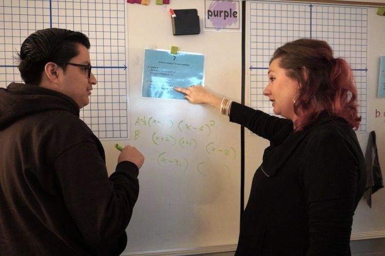 Kentwood — In math teacher Courtney Steketee’s Algebra 2 class at East Kentwood High School, students worked together on their feet on whiteboards, using various strategies to solve problems.