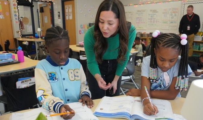 At Meadowlawn Elementary, about three miles away from Steketee’s East Kentwood High classroom, third-grade National Board certified teachers Lindsey Greenfield and Annie Hammill were also teaching math across the hall from each other.