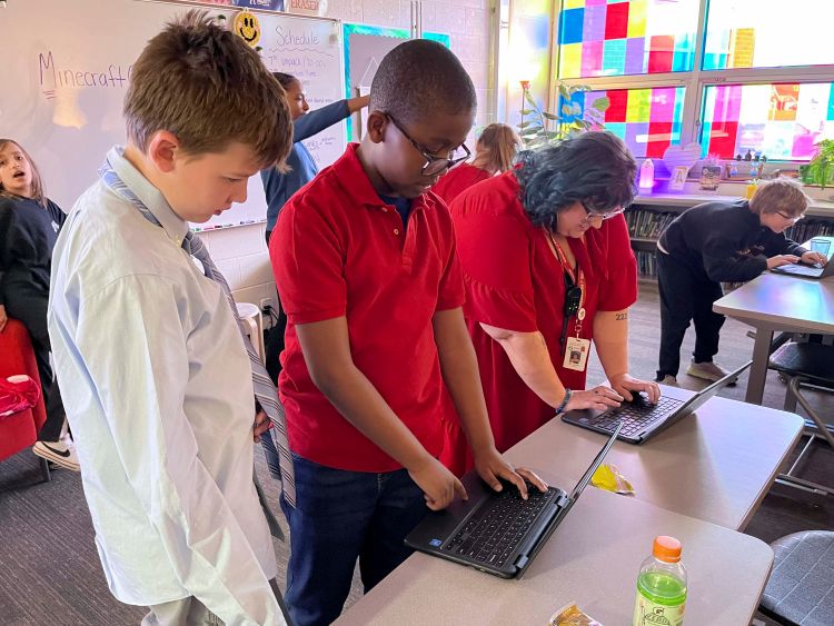 Though it’s one of her favorite hours of the week, Darby gives credit to student Jonah York for the club’s creation. Last fall as a fifth-grader, he started the school year by campaigning for a Minecraft Club at Oakestown after enjoying a similar club at his elementary school.