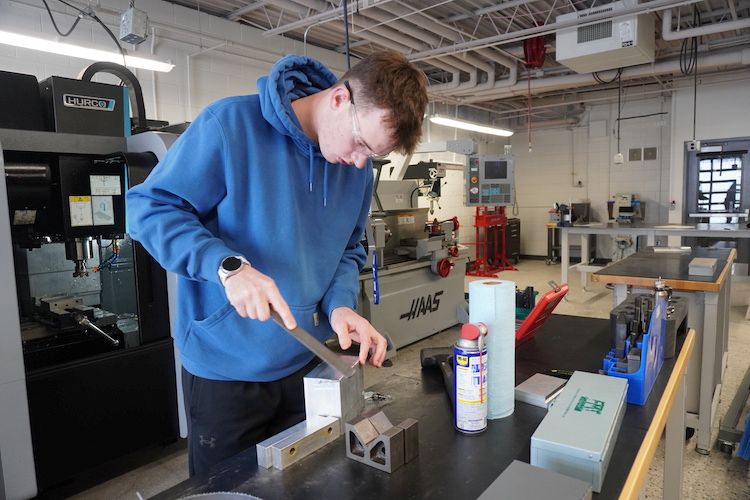 In the first year of the program, students are hands-on with mechanical and electrical work, computer-aided drafting, computer-aided manufacturing, hydraulics, pneumatics, program logic controls and industry safety. They also learn about robotics, lean manufacturing, fundamentals of engineering, manufacturing, electrical and mechanical controls.
