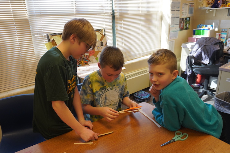 She passed out more than students needed, allowing them to consider what would work best — yarn versus rubber bands, for example.