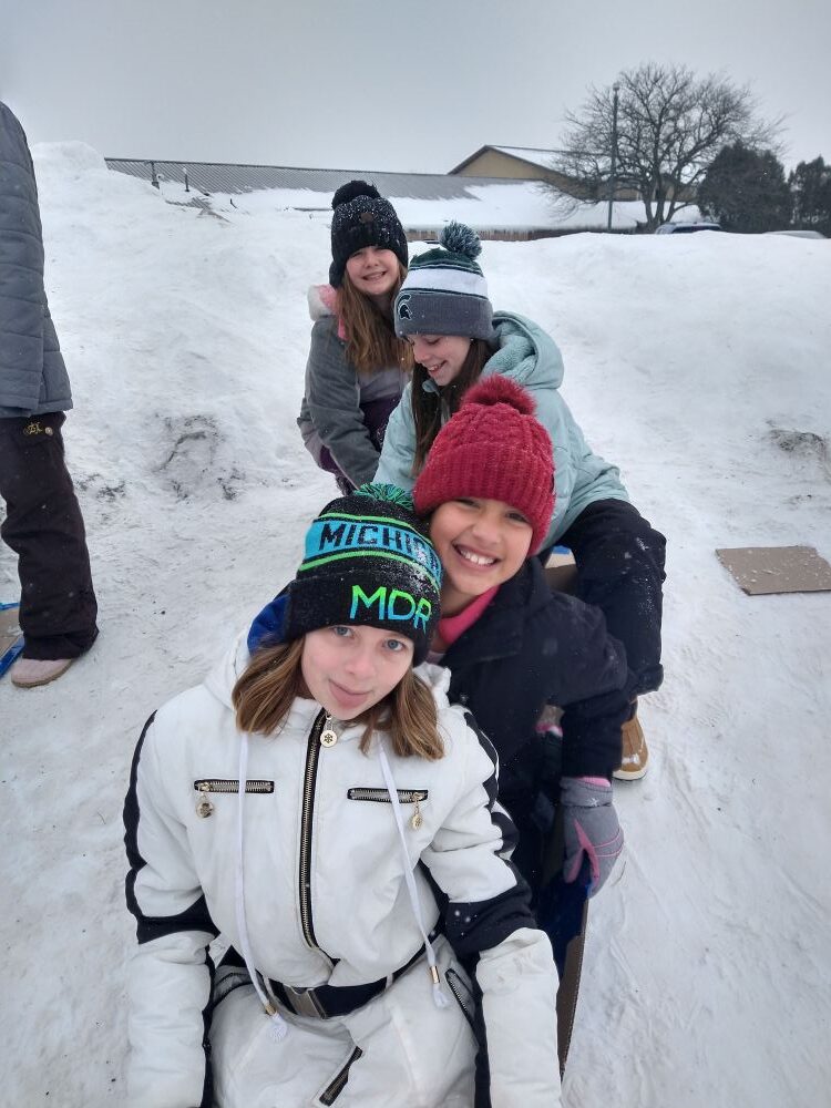 Despite all these considerations, the students — including Lily and Natalie, and their classmates Haven Frick and Raelyn Rasch — said they had a blast once they actually got their sleds out onto the hill.