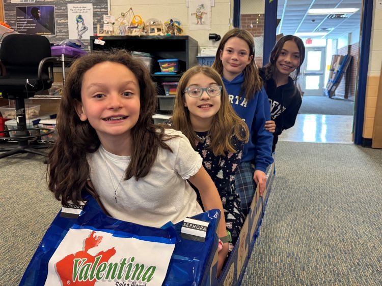 Fifth-graders in teacher David Oudbier’s STEM classes spent time in January and early February working together in small groups to plan, design and build their own bobsleds using only cardboard boxes, tape and their own imaginations.
