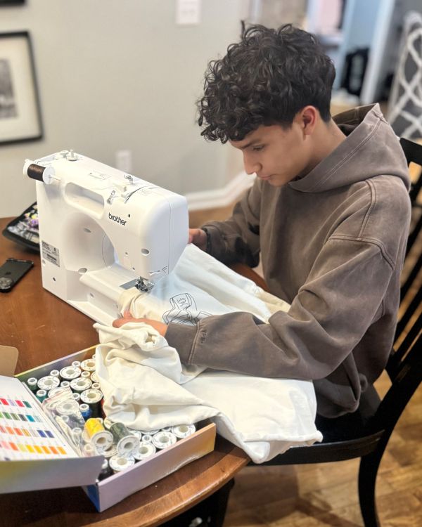 He learned the basics of sewing in a class at North Rockford Middle School. He had a sewing machine at home, and when the class ended, he decided to keep at it.