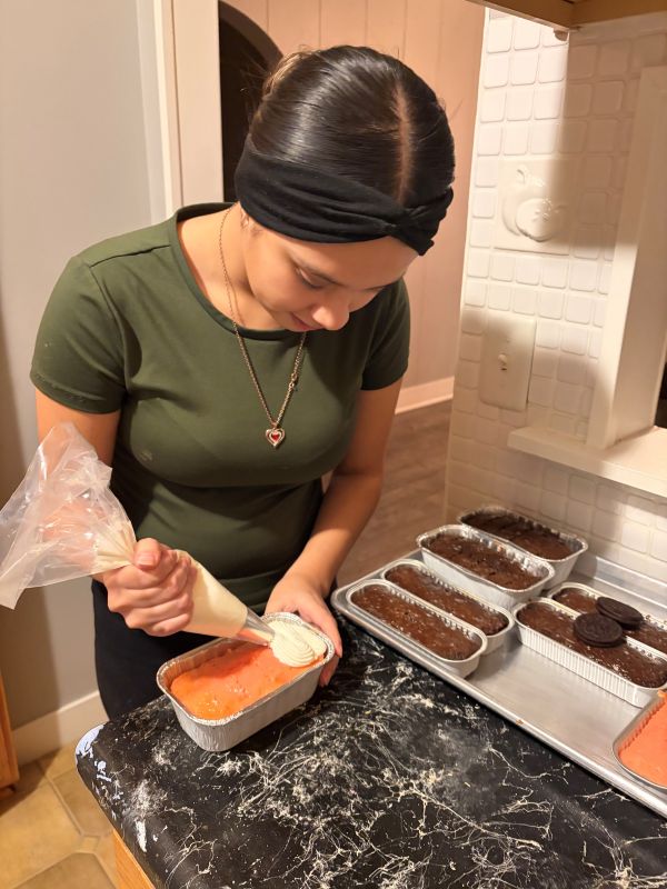 Kayla fills orders for cakes and cake pops between school, homework and working on the weekends.