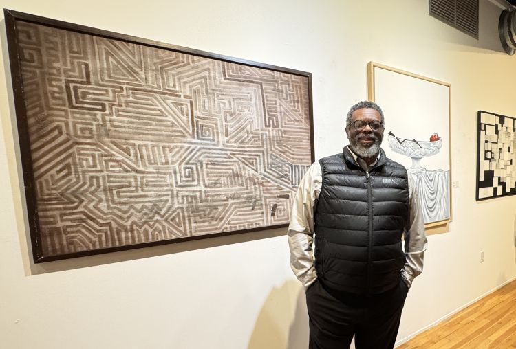 He doesn’t actively promote the fact that he recently had five pieces in a legacy exhibit titled “Still Here: Artists Who Shape Grand Rapids” at AllArtWorks studio in Grand Rapids, which highlighted artists who have been creating art in the area for decades.