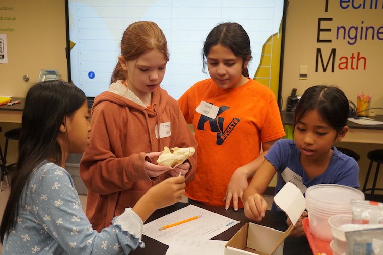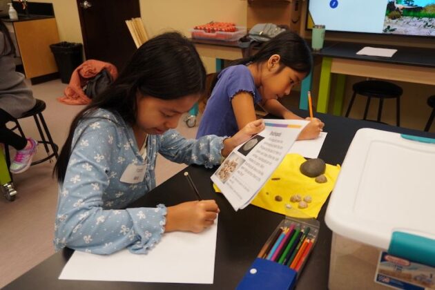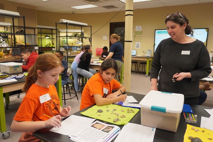 For their final activity, students conducted their own fossil dig. Each group searched through a container of sand to uncover hidden fossils. After about 10 minutes, they drew and identified their discoveries to determine where the fossils may have originated.