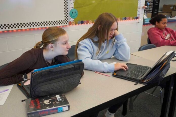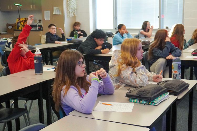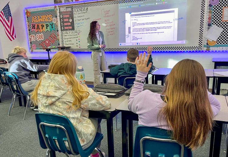 Kent City — As seventh-graders settled into their seats on a wintry morning, teacher Brooklynn VanOeffelen pointed to the day’s agenda written on the whiteboard.