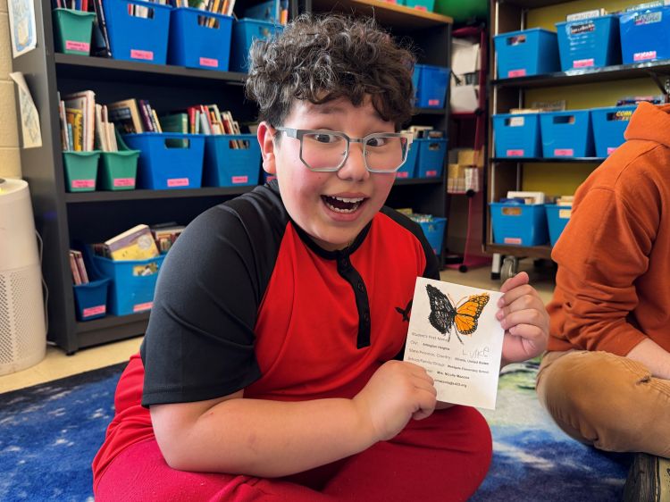“This is from the city of Arlington Heights, Illinois!” Nathaniel announced, holding up a black-and-orange-colored paper monarch.