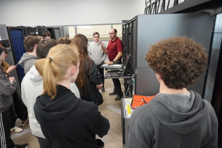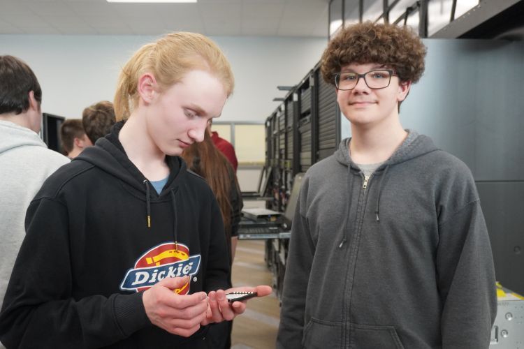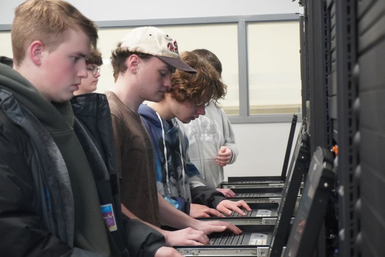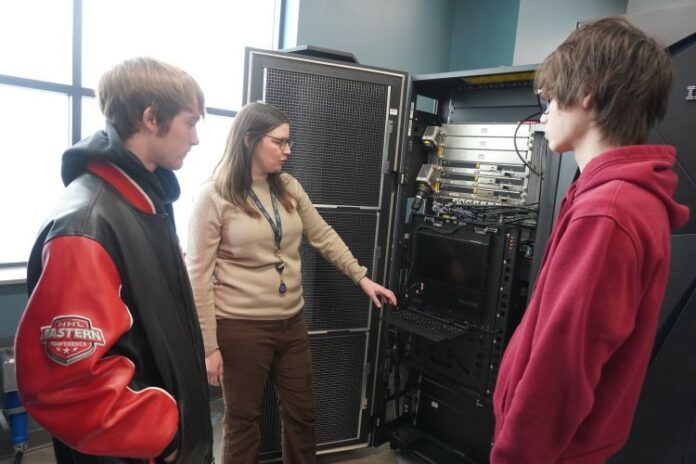 As they entered the company’s lab, students immediately noticed the heat. With the air conditioning not operable and rows of computers generating warmth, the environment mirrored what field technicians sometimes face on the job, explained tech support manager Matt Kaminski.