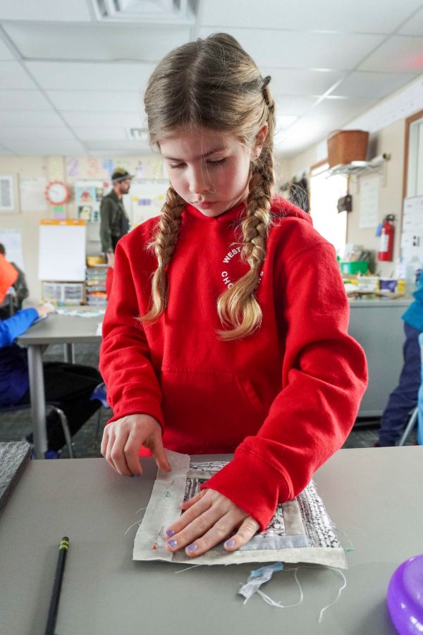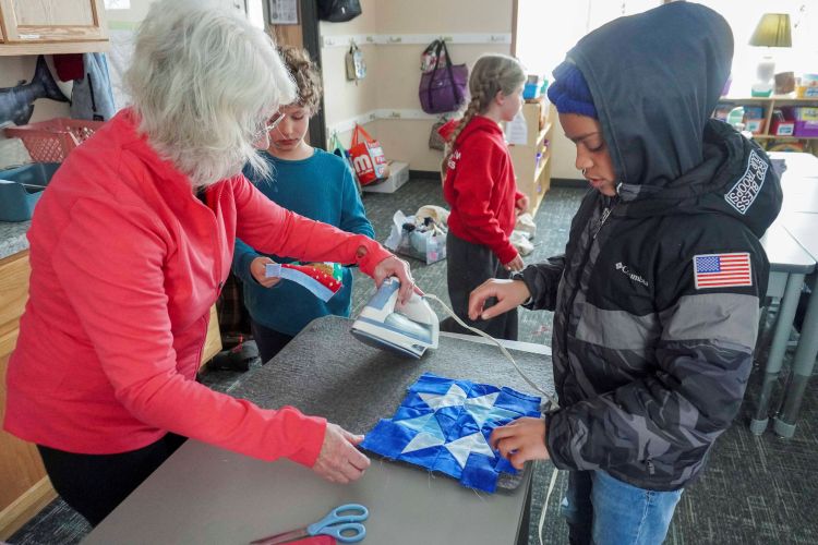 McCormack said the quilt project was a good way to help students keep focused on a task while also bringing history to life. She received an outpouring of donated fabric and sewing machines from the West Oakview community to make it happen, and several “class grandmas” volunteered their time to help teach the techniques.