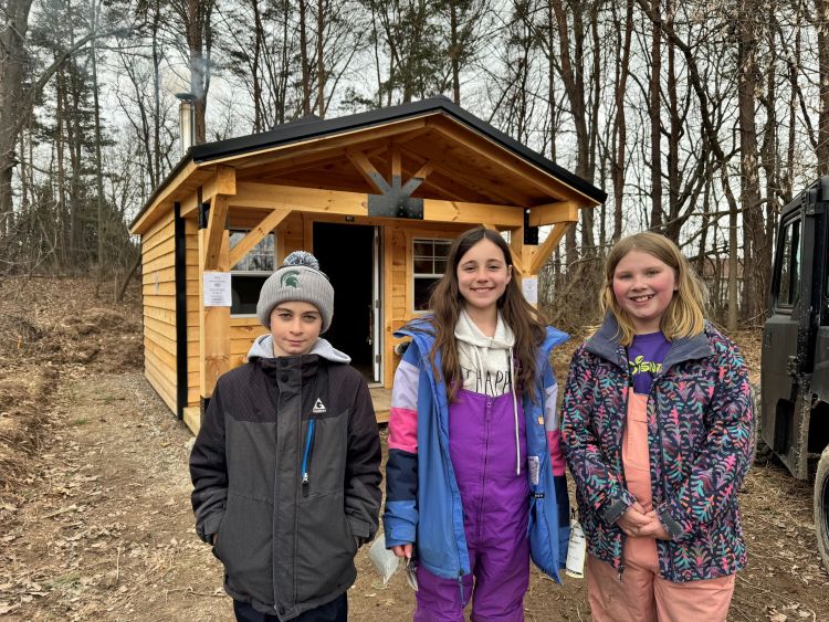 In late March, after the taps on the trees had been taken down, while a chill still hung in the air, fourth-graders Shae Randle, Andrew Zemens and Galena Sheehan joined Dzirbowicz to give SNN a tour of the sugar shack.