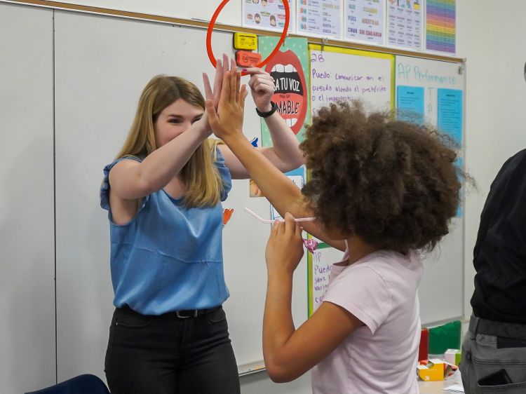 Some students were determined to color inside the lines of their ships, while others raced to the part where they became astronauts, launching their creations through a hoop hanging from the ceiling.