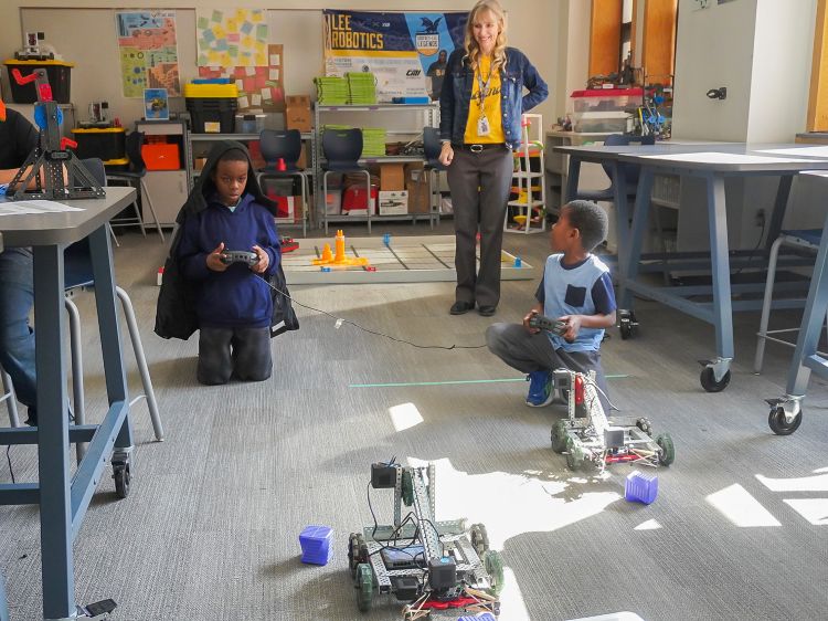 In Melissa Donovan’s STEAM classroom, students could try their hand at driving robots and controlling motorized devices.