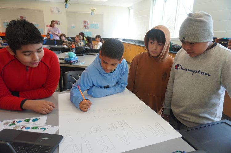 Inside, students worked on a multifaceted clean-up campaign, designing a TV ad, writing morning announcements, and creating digital and cardboard posters.
